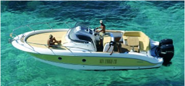 Este fantástico barco tiene una amplia distribución, con un gran solarium a proa. Cuenta con dos potentes motores de 250CV Yamaha fuera de borda...